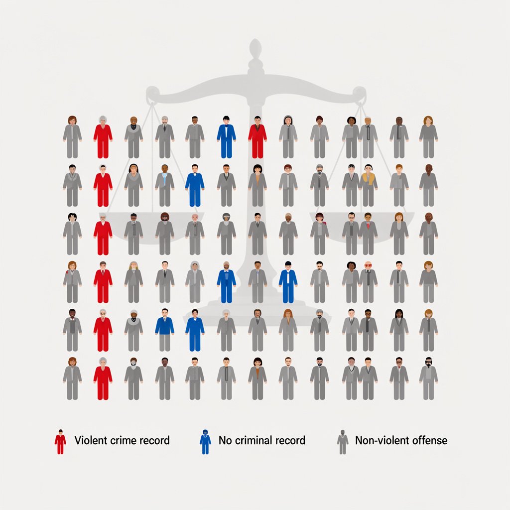 - About 60%Â had some form of criminal charge or conviction, but the majority were for non-violent offenses